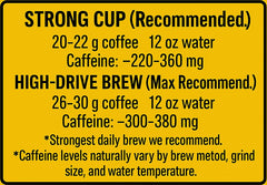 This blend naturally delivers higher caffeine without additives or gimmicks. Expect a strong kick, deep body, and a smooth, no-nonsense finish that stays true from first sip to last.