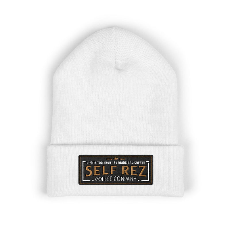 Self Rez Embroidered Cuffed Beanie — Retro Patch Winter Hat